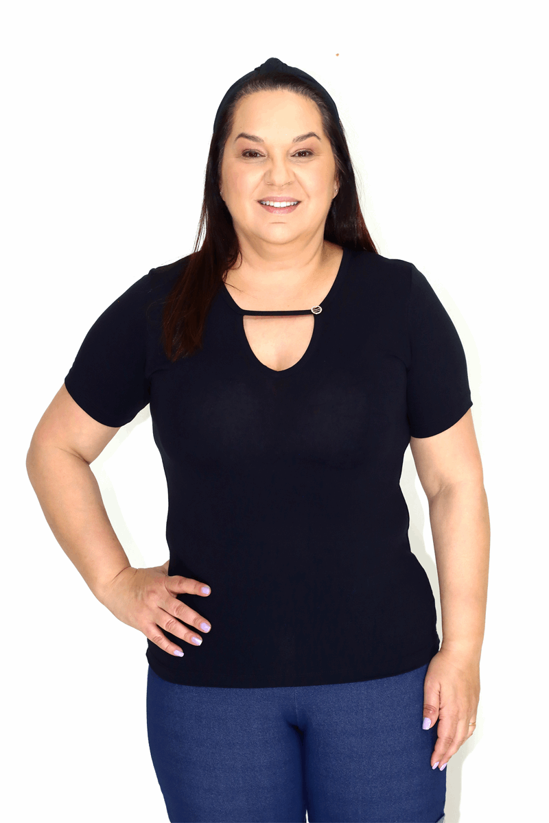 Camisa em Decote V com Detalhe